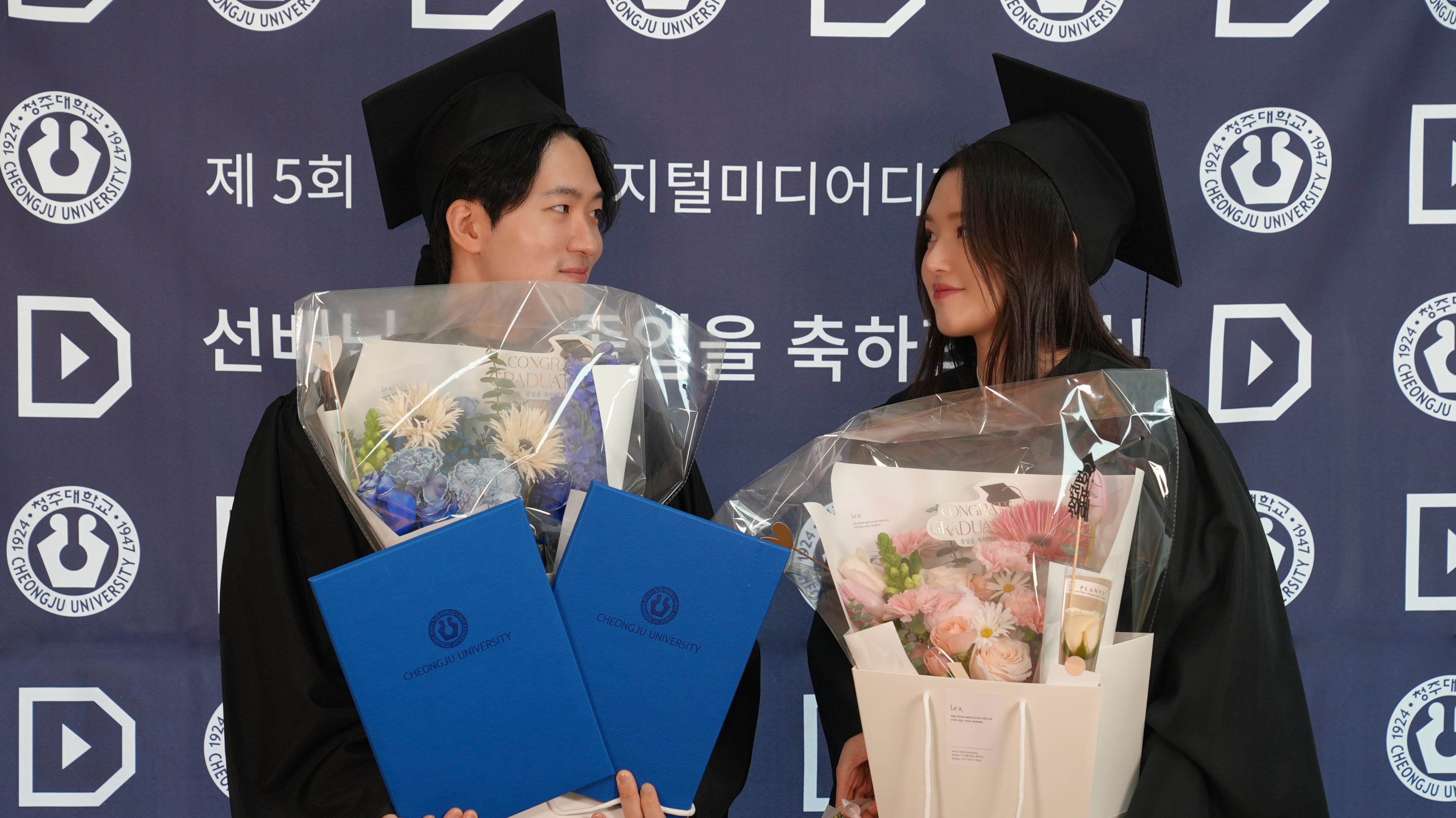 청주대학교 디지털미디어디자인학과는 지난 2월 20일(금) 예술대학 신관 2층 로비에서 전기 학위수여식을 진행했다. 이번 학위수여식에는 총 48명의 졸업생이 참석했다.